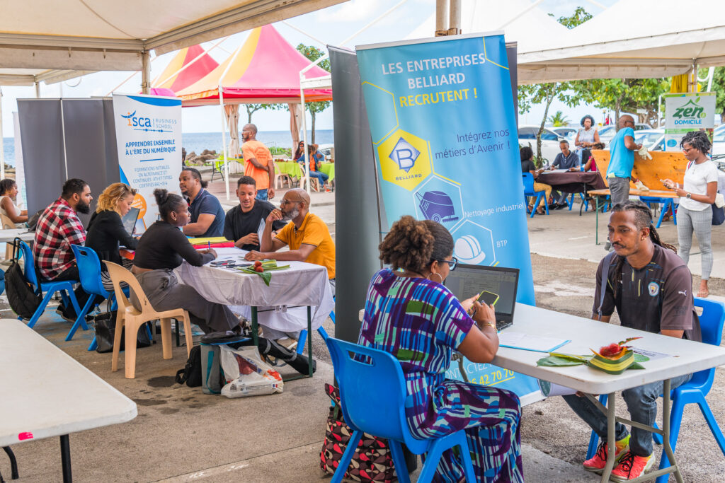 Lors de la 4ème journée de l’Espace Emploi Itinérant, la ville de Schœlcher s’est vue accueillir une cinquantaine de participants sur la Place des Arawaks qui s’est transformer en un lieu d’insertion professionnelle.